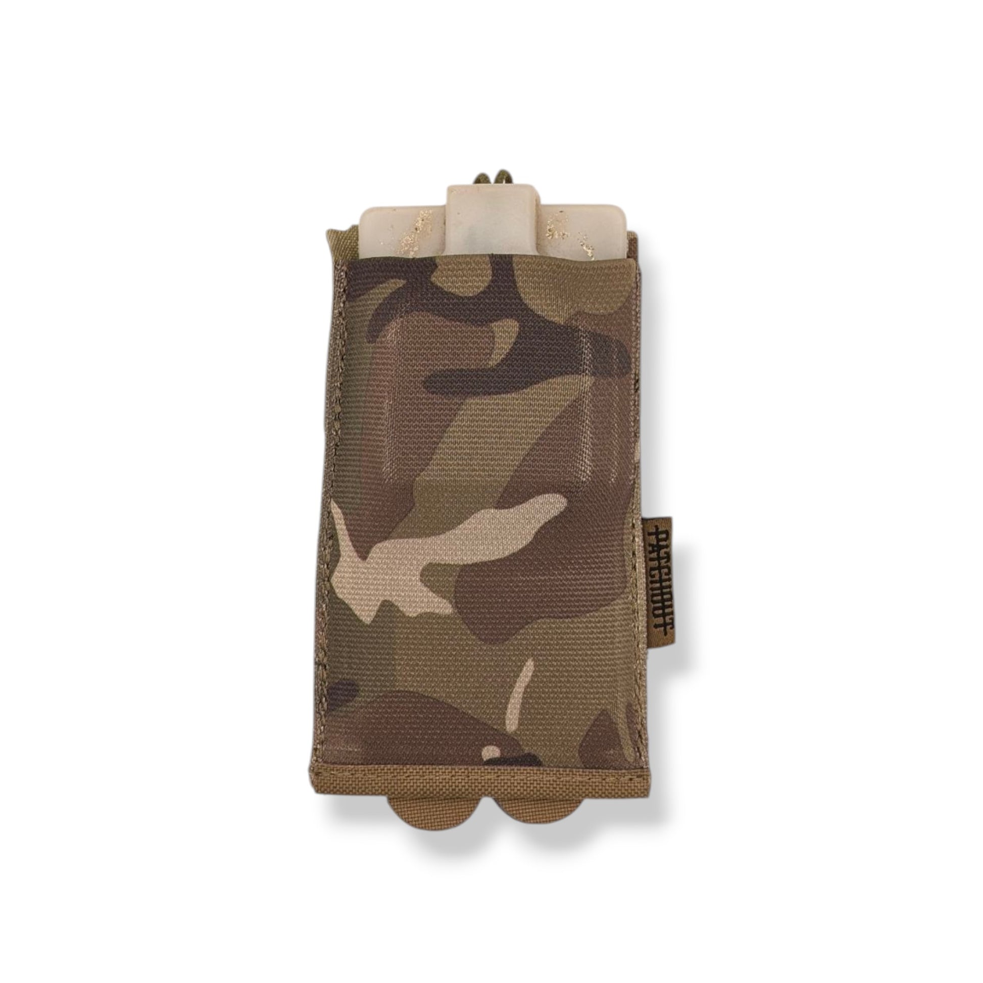 - MOLLE-compatible and mounts cleanly to plate carriers, standard issue triple mag shingles or side cummber buns.