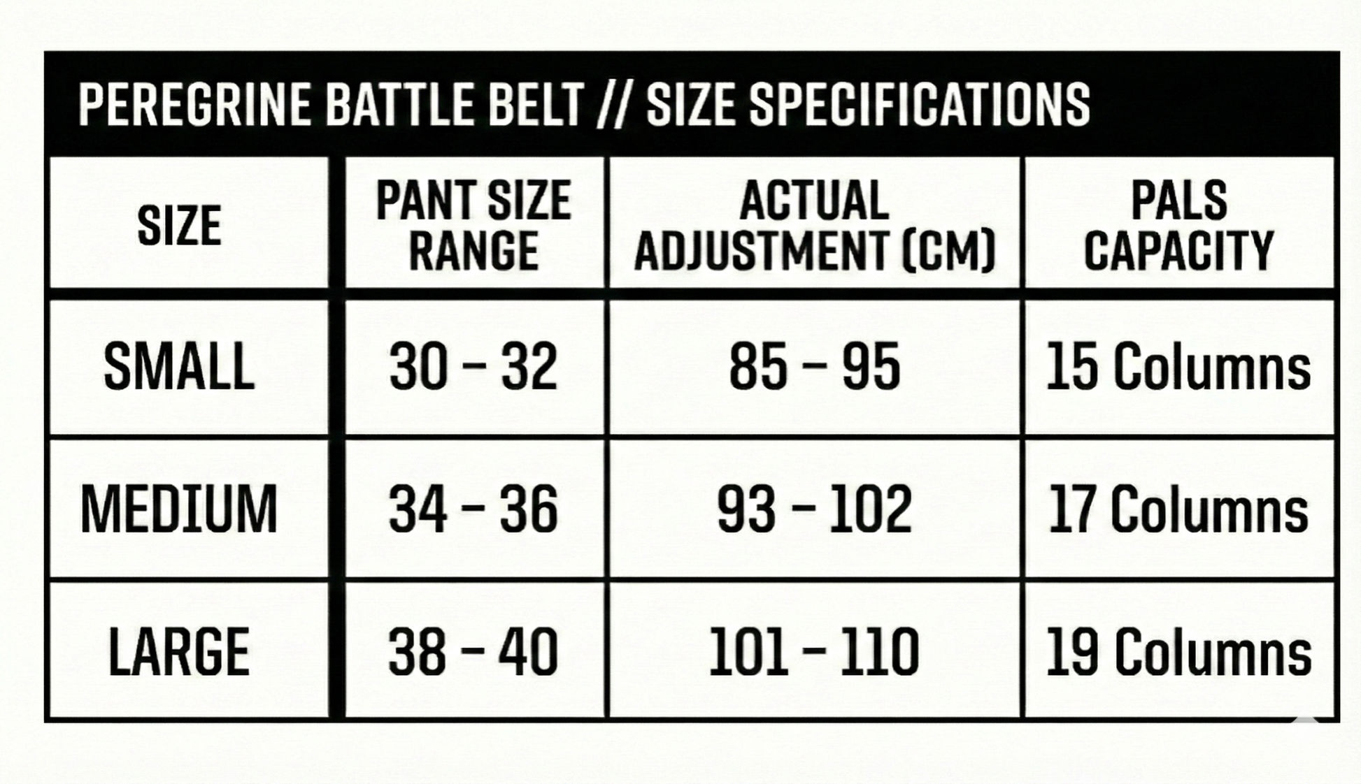 Large: 101–110 CM (19 PALS Columns)